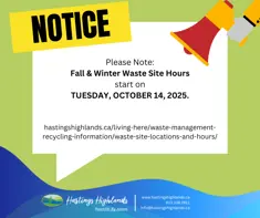 Please Note: Fall & Winter Waste Site Hours start on