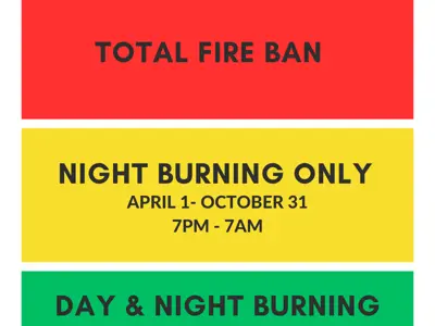 - April 1 to October 31 - Night Burning Only is permitted